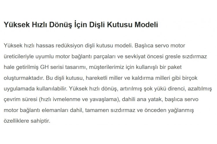 Yüksek Hızlı Dönüş İçin Dişli Kutusu Modeli