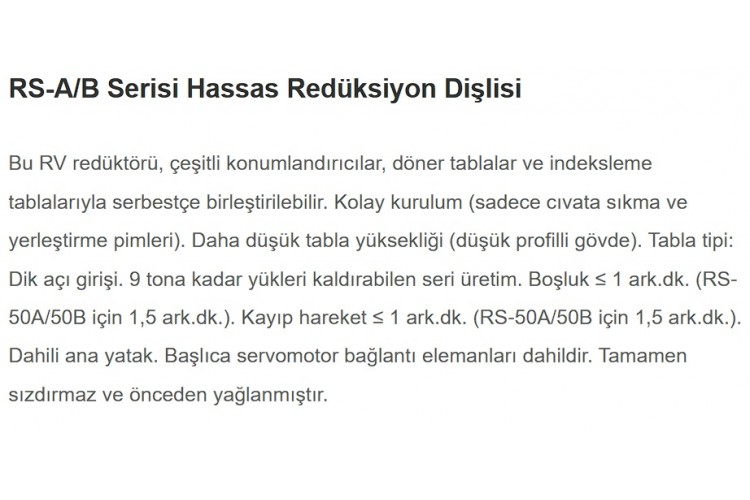 RS-A/B Serisi Hassas Redüksiyon Dişlisi